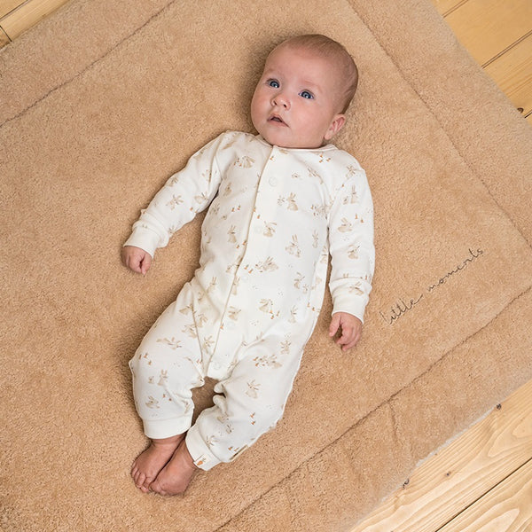 De teddy stof voegt een extra vleugje zachtheid toe, waardoor het boxkleed niet alleen heel zacht is maar ook een mooie toevoeging is in de box. De vulling met polyester zorgt voor een comfortabele ondergrond, perfect voor speeltijd en dutjes. Dankzij de twee zijde is het Little Dutch speelkleed geschikt voor elke stijl. Aan de ene zijde bevat het boxkleed een lief konijntje en aan de andere kant heeft het kleed een donkerdere kleur en een mooie tekst. De details op het kleed zijn subtiel verwerkt en maken een mooi geheel.