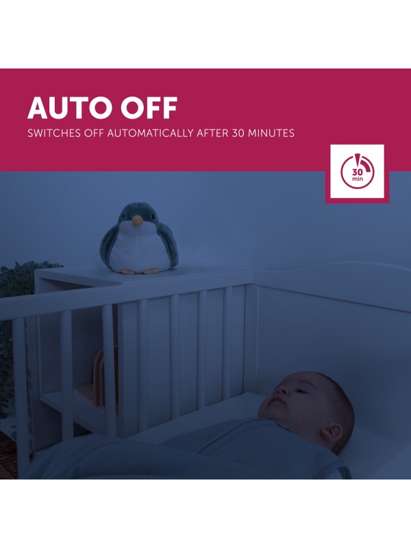 De ingebouwde huilsensor zorgt ervoor dat de projector weer automatisch aangaat zodra je kindje huilt of onrustig is. Werkt op 3 AA-batterijen (niet inbegrepen).