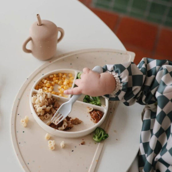 De siliconen antislip bord van Mushie is een rond bord en heeft keuze uit verschillende kleuren. Het bordje heeft een rand van 2 centimeter en drie verschillende vakjes voor een maaltijd of snack voor je kleintje. En voor de kleintjes die graag tijdens het eten spelen met hun bordje? Geen probleem! De bordjes plakken namelijk als een zuignap op tafel, dit voorkomt allerlei geknoei. Met het lipje haal je het bordje geheel simpel weer los, een superfijn bord voor je kleintje om zelfstandig te leren eten.