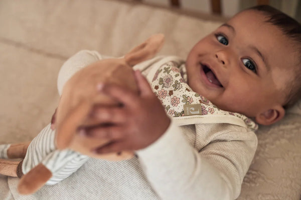 Heeft jouw kleintje last van doorkomende tandjes en wil jij het outfitje beschermen tegen kwijl? Of gebruik jij altijd een slabbetje bij het geven van vaste voeding en wil je eens iets anders dan een standaard slabbetje? Ga dan eens voor een hippe bandana. De Retro Flowers bandana heeft een vrolijk bloemenprintje. Door de handige drukknoopjes kun je het formaat gemakkelijk aanpassen en de bandana is gemaakt van OEKO-TEX gecertificeerd katoen. In de verpakking zitten 2 bandana's.