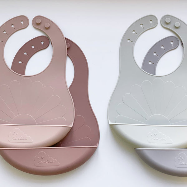 Zachte en flexibele siliconen slabbers met opvangbakje van het Deense merk Cam Cam Copenhagen. Met prachtige bloem motief waardoor je kleine in stijl kan dineren.