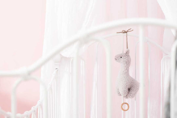Een muziekje kan rustgevend werken voor een baby. Deze leuke muziekhanger met een lama heeft een houten ringetje aan het trekkoordje en touwtjes om de hanger aan op te hangen. De muziekhanger staat leuk in elke babykamer. Het muziekje wat de muziekmobiel afspeelt is 'Lullaby' en speelt ongeveer 60 seconden af.