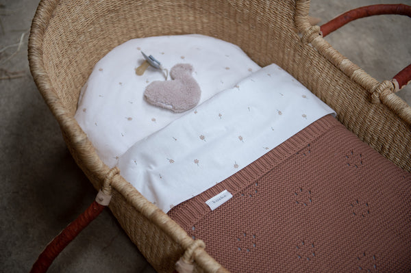 Deze ajour gebreide Koeka wiegdeken is een echt collectors item. De deken is verkrijgbaar in unieke trendkleuren zodat er zeker een bij jouw babykamer past. Deze wiegdeken is zowel stylish als duurzaam en gemaakt van kwalitatief hoogstaand garen om jarenlang plezier van te hebben. Naast de wieg kan je deze luchtig gebreide deken ook gebruiken voor onderweg in de kinderwagen of autostoel 0+. En doet je baby een dutje in de box of wipper? Ook dan is het een fijne deken om over je baby heen te leggen.