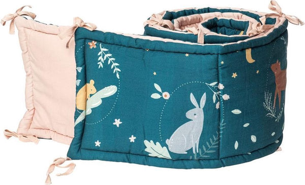 Dieser Bett Stoßfänger von Sebra besteht aus 100% Baumwolle mit Polyesterfüllung. Der Bett Stoßfänger ist an den Stangen mit Saiten befestigt, so dass es an Ort und Stelle bleibt. Ist 360 cm lang und ist 26 cm hoch und passt in ein Krippen- oder Junior -Bett -Modell. Kann mit 30 Grad gewaschen werden.