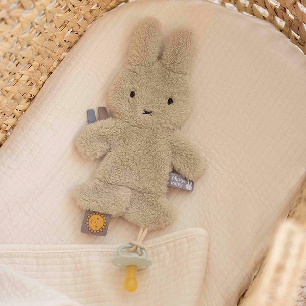 Ein wunderbar weiches Zitzen -Tuch für die Kleinen. Dieses flauschige Zitzen -Tuch ist wunderbar zu kuscheln und enthält verschiedene Etiketten, die mit Kindern gespielt werden können. Sie befestigen die Zitze am Baumwollschnur und sind immer in Reichweite. Es ist sehr schön als Mutterschaftsgeschenk! Alter: Von Geburt an.