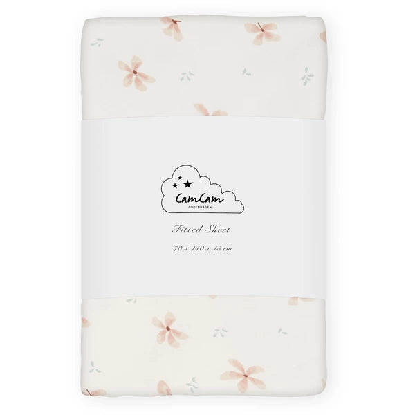STADED SCHWEISE 100% Bio -Satin -Baumwolle aus Camcam Copenhagen. Das angepasste Blatt hat rundum elastisch und ist für die Krippe geeignet. Erhältlich in verschiedenen Drucken.