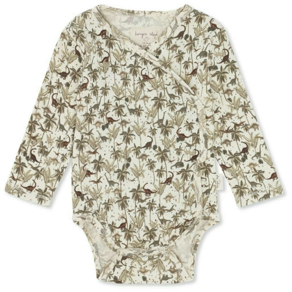 Schöner Neugeborenen -Umschlagsbodys von Konges Slojd! Weicher und komfortabler Körperanzug von Konges Slojd Mit schönem Druck. Mit einem Übertragungsabschluss, damit Sie den BodySuit nicht über den Kopf Ihres Babys anziehen müssen. Wie praktisch ist das!