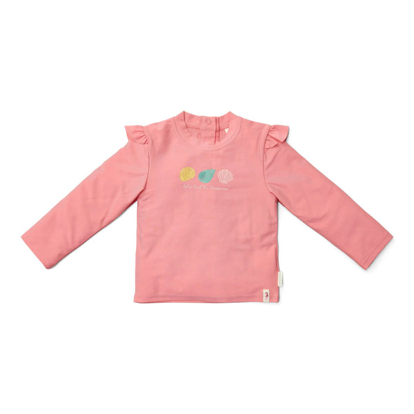 Das Schwimmshirt bietet einen guten Sonnenschutz und hält Ihr Kind im Wasser angenehm warm. Das Shirt lässt sich leicht an- und ausziehen, auch wenn es nass oder sandig ist. Kombinieren Sie es mit der passenden Ocean Treasures Rüschen-Badehose für einen kompletten Surfer-Look.