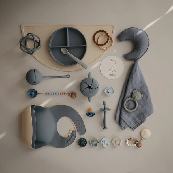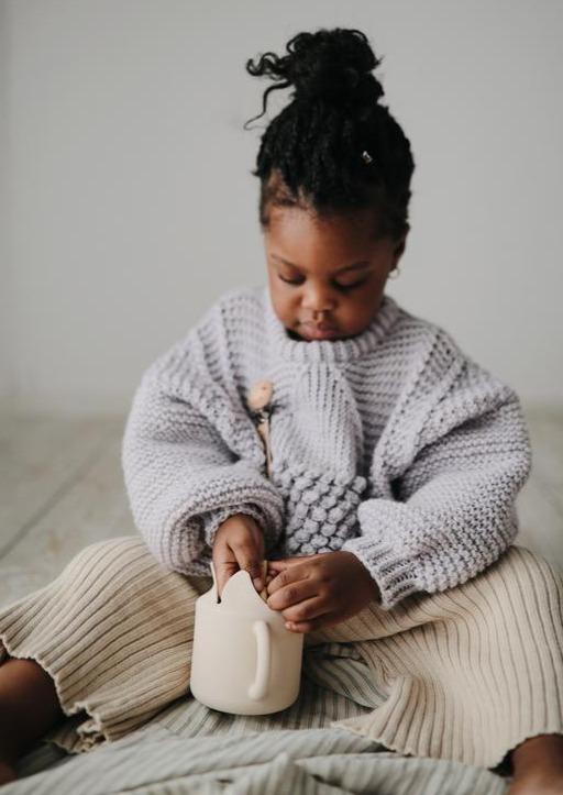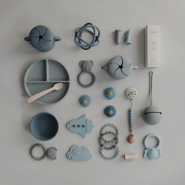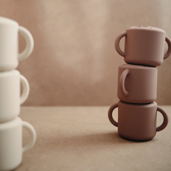 Der Mushie-Silikon-Snackbecher wurde aktualisiert. Ideal für Ihr Kind, um sein Obst zu essen, ohne zu kleckern. Der Becher ist für Babys und Kleinkinder ab 6 Monaten geeignet.