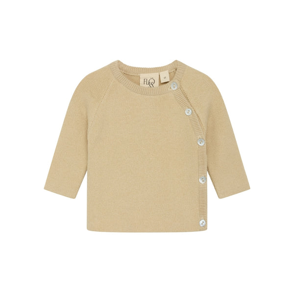 Kaya Sweater is of soft knitted organic cotton, with side opening. Perfect for keeping your baby warm all year round. And timeless in its simplicity, so you can still use it for another child or to pass it on. With handy buttons for quick changing. Easy to wash out.