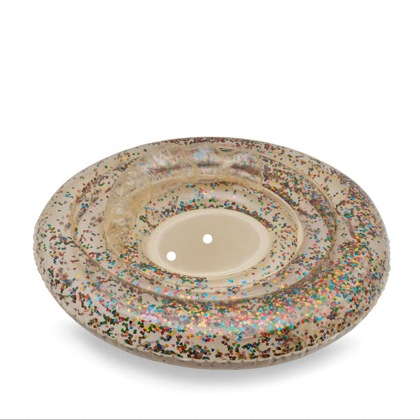 Opblaasbare zwemring van Konges Sl0jd voor kindjes van 1–2 jaar. Transparant met glitters & confetti, gemaakt van duurzaam PVC.