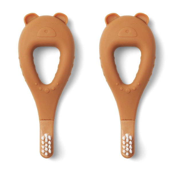 Toothbrush designed for little hands with a textured surface to stimulate baby's senses.