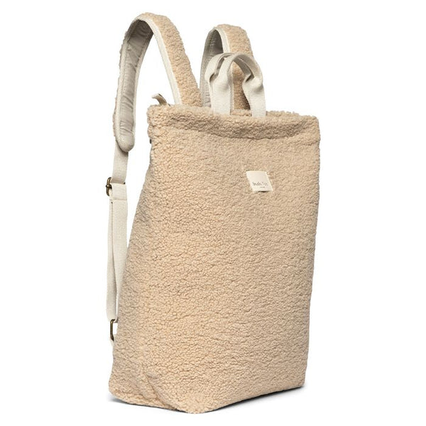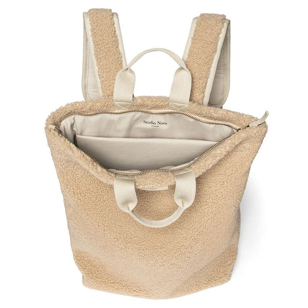 Not so fan of the open model of the Studio Noos bag? Then Studio Noos backpack adult teddy ecru is the ideal solution. The soft bag has two sturdy shoulder straps, a zipper and two loops to hold by the hand. The bag is still large enough to hold toys, changing and care products. You can also use it for your laptop (with a sturdy laptop compartment!), keys and wallet. The bag has a narrow bottom of (29cm) and a wide top (39cm).