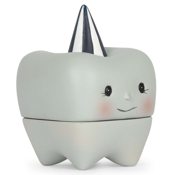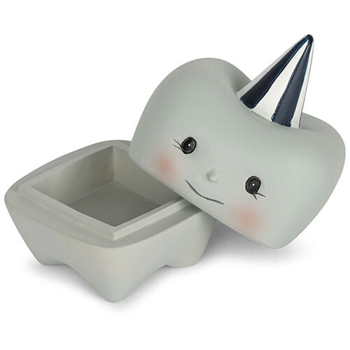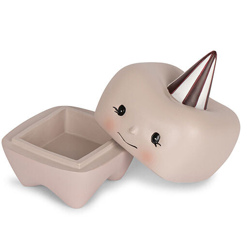 This funny tooth box in the shape of a tooth, has a smiling face, pink cheeks and a party hat on. Give the tooth box as a gift to your child as soon as he or she starts changing or surprise a friend at her baby shower. After all, a tooth box lasts a lifetime and is sure to get a nice spot in the house. The box is made of stone and consists of two parts.