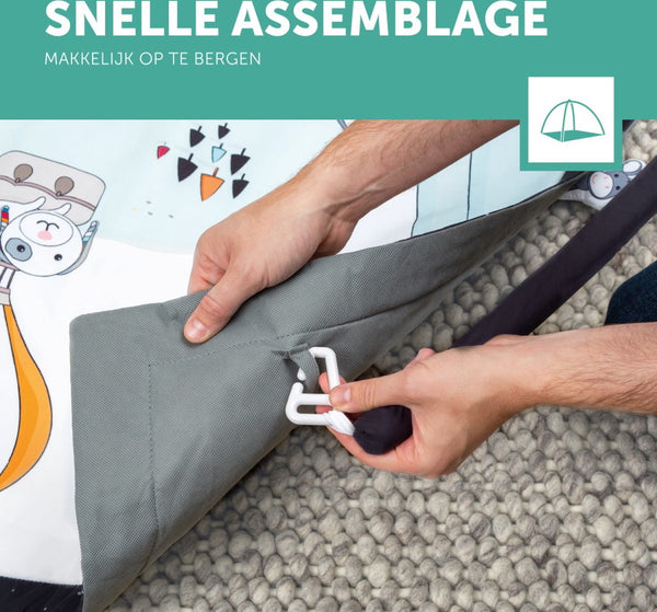 Le tapis d'éveil peut être utilisé dès la naissance. Le tapis est-il taché ? Pas de problème, il est lavable en machine. Les arches de jeu sont amovibles, ce qui vous permet de choisir un autre tapis. Les arcs de jeu amovibles facilitent également le rangement du tapis.
