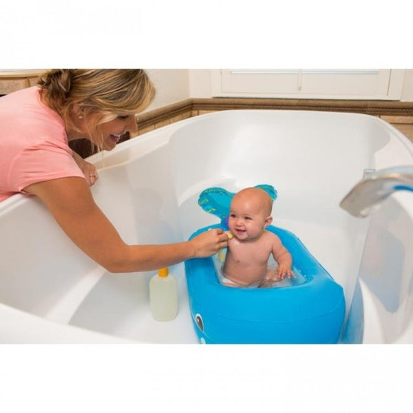 Amusez-vous à barboter dans cette piscine gonflable Infantino en forme de baleine ! Cette baignoire est parfaite pour la transition vers le grand bain. Vous pouvez la placer au milieu de votre bain ! Elle est également livrée avec 10 balles flottantes pour beaucoup d'amusement dans l'eau. Vous pouvez même l'utiliser comme piscine à balles ! Bouchon de bain inclus pour vider l'eau facilement. Attention : ne laissez jamais votre enfant seul dans l'eau ! Convient à partir de 6 mois environ, lorsque votre enfant peut s'asseoir sans aide.