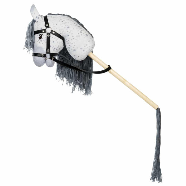 Les enfants peuvent jouer et fantasmer pendant des heures avec ce magnifique cheval en bâton à taches blanches et à crinière grise. L'impressionnante crinière en nylon peut être facilement coiffée avec des tresses et d'autres créations magnifiques. Combinez le cheval à bâtons avec un set de toilettage et une écurie pour une expérience de jeu complète !