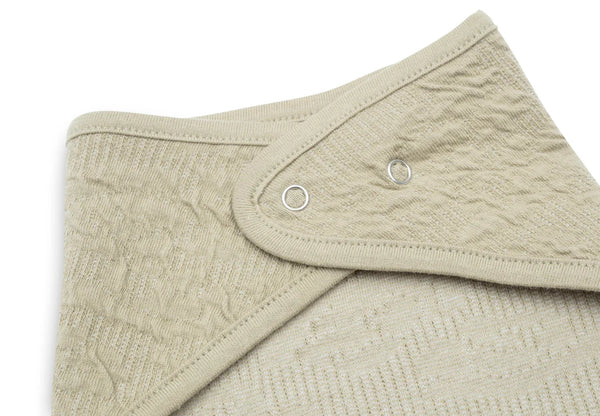 Votre enfant fait ses dents et vous voulez protéger sa tenue de la bave ? Ou vous utilisez toujours un bavoir pour donner des aliments solides et vous voulez quelque chose de différent d'un bavoir standard ? Dans ce cas, optez pour un bandana cool. Le bandana Soft Waves a une jolie impression de vagues froissées et est agréable et extensible. Les boutons-poussoirs pratiques permettent d'ajuster facilement la taille et le bandana est fabriqué en coton certifié OEKO-TEX. Il ne vous reste plus qu'à choisir entre le vert olive et le nougat qui conviennent le mieux à votre enfant. Le paquet contient 2 bandanas.