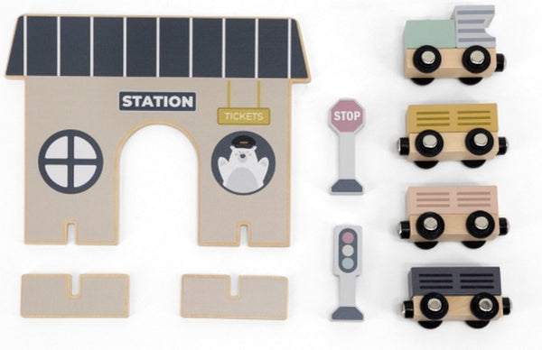 Tjuuk tjuuk, voici le petit train à la gare ! Avec ce set de train, l'imagination de l'enfant prend vie. Ce set de base comprend une locomotive et trois wagons, des panneaux de signalisation, une gare et une voie ferrée de 18 pièces avec un pont ! Votre enfant veut un circuit plus grand ou préfère un autre thème pour jouer pendant des heures ? Le set peut être étendu avec le set d'extension de rails ainsi qu'avec les extensions de dinosaures, de fantaisie et de chantier !