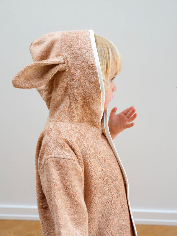 Le peignoir de Fabelab avec ses mignonnes oreilles de lapin est parfait pour garder votre enfant au chaud et le câliner après le bain.