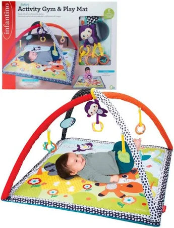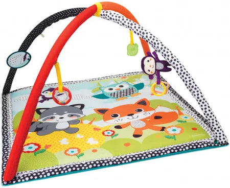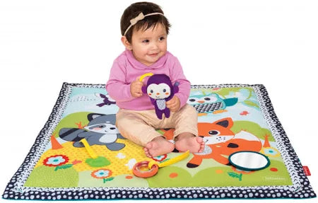 Le tapis de jeu Twist & Fold d'Infantino est l'endroit idéal pour que votre enfant joue, explore et apprenne ! Ce tapis coloré, avec un joli motif de renard, est livré avec un nœud et 5 jouets amusants, dont un miroir et des hochets. Ce tapis encourage votre bébé à bouger, à saisir et à interagir, qu'il soit couché sur le dos ou sur le ventre.